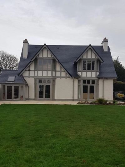 Mr Lee Noonan took on a difficult project at our house in Montenotte in June 2018. He and his team removed the old (badly damaged) slate cladding from the entire rear-facing wall of our house and re-slated it fully. This was a complex job as it involved removing a complete wall of slate embedded in lime-mortar (probably 120 years old), re-aligning the under-surface of the wall and applying a finish of new slates on a traditional, newly-laid wooden lattice.